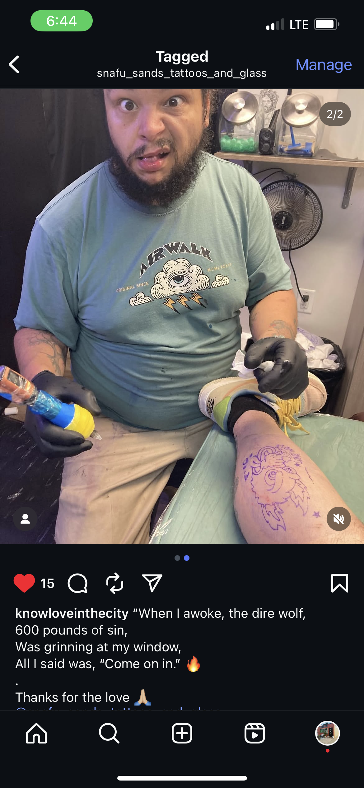 Outside of tattooing, Nick is also a trained lampworker and glass artist, studying primarily under Art Dexter, with early exposure to the heady pipe world through Jake Trudel — giving him an unusually deep understanding of three-dimensional form, structure, and flow.